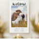 Foto Begrüßungsbanner-Zeichen, Teil der WIR SAY I MOO-Kollektion - Hochzeitsempfang Grußdekoration. Personalisierte Dekoration für Ihren Hochzeitstag von Ricaso .. Fügen Sie Ihre eigenen Details zu diesem atemberaubenden Banner mit einem dicken Pinselstrich Stil Typografie für ein lustiges Paar.