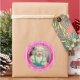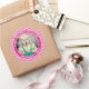 Ihr Foto Einfache Streifen Muster Fuchsia/Weiß Runder Aufkleber
