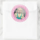 Ihr Foto mit einfachen Streifen Muster Rosa/Weiß Runder Aufkleber