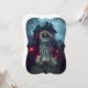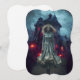 Eine geheimnisvolle junge Frau in einem fließenden Kleid steht vor einem gotischen Herrenhaus mit leuchtenden roten Fenstern, Set gegen einen dunklen und unheimlichen Himmel. Seltene Bäume und fliegende Fledermäuse verstärken die atmosphärische Spannung weiter. Digitale Kunstfotografie CS5