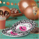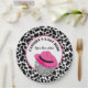 Feiern Sie Braut mit diesen disco cowgirl Junggeselinnen-Abschied Papier Teller. Sie sind mit einem lustigen Schwarz-Weiß-Kuh-Druck versehen und zeigen eine Diskokugel mit einem rosa Cowboyhut. Der Text kann mit Ihrer eigenen Nachricht angepasst werden.