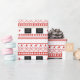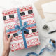 Fügen Sie Ihr Logo hinzu und personalisieren Sie dieses rote Weihnachtspapier. Corporate und Business maßgeschneiderte / personalisierte Logo klassische Weihnachts-Sweater Muster Packpapier. Klassisches Weihnachtswintermuster im Norden, mit Schneeflocken und Weihnachtsbäumen. Nordische Weihnachtsmuster in Weiß und Rot. Red personalisierte Weihnachtsverpackung für Geschäfts- und Firmengeschenke.