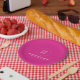 Hochladen des Logos Hinzufügen Text rosa Solid Farbe Moderne elegante anpassbare Vorlage 7" Rundpapier Platte.
