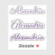 Dekorieren Sie Ihren Laptop, Ihre Wasserflasche, Ihr Gehäuse oder andere Artikel mit drei individuellen Aufklebern, die Ihren Namen in 3 verschiedenen lila Schriftart mit handgeschriebenen Schriften enthalten. Fügen Sie Ihren Namen in die Sidebar ein. Wählen Sie "matte weiß" in der Sidebar, um den transparenten Hintergrund um Ihren Namen weiß zu machen.