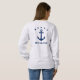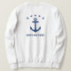 Stilvolles FrauenSweatshirt mit individuellem klassischen Schiffsanker, 5 Sternen und personalisiertem Namen, Bootsnamen oder anderen Wunschtexten in Marineblau auf hellgrau. Auf vorne und hinten gedruckt. Wählen Sie aus mehreren Farben und passen Sie Ihre Ausrüstung an. Macht ein großartiges Geschenk für jeden Anlass. Perfekt für jede Jahreszeit.