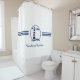 Ihr Personalisierter Name oder Bootname mit dem klassischen Leuchtturm Nautic auf einem individuellen Duschvorhang.