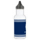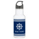 Ihr Personalisierter Name, Bootname oder Text mit einem speziellen Rad-Helm auf einer Navy Blue und White Stripes Wasserflasche.
