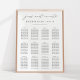 Die in klassisch schwarz-weiß gehaltene Gästekarte "Ihr Sitzplatz wartet auf" oben in eleganter Schriftzeichen, darunter Ihre Tischbelegung. Platz für 12 Tische.