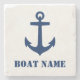 Stilvolle Marmor-Untersetzer mit Ihrem personalisierten Bootsnamen, Familiennamen oder anderen Texten, einem benutzerdefinierten nautischen Bootsanker in Marineblau. Auch in Sandstein, Travertin und Kalkstein erhältlich.