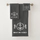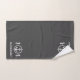 Ein wunderschönes personalisiertes Badetuch-Set mit Ihrem Familiennamen oder Bootsnamen. Mit einem speziell für den Wassersport konzipierten Anker- und Seepferd-Emblem in Weiß auf Meeresgrau oder ändern Sie einfach die Hintergrundfarbe zu Ihrem aktuellen Dekor. Die perfekte Ergänzung zu Ihrem Zuhause, Strandhaus oder Ferienhaus.