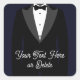 Ihr Text-/Farbschwarz-Tuxedo-Anzug-Groom Prom Quadratischer Aufkleber