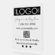 Ein schwarzes Firmenlogo mit einem klaren Acrylzeichen mit Ihrem Firmenlogo, Slogan oder Tagline, Telefonnummer, Website, individuellem QR Code und individuellen Social Media Icons . Ein personalisiertes Acrylzeichen für Schaufenster und Schaufenster. Ideal für Unternehmen, die ihre Geschäftsdetails auf einem klaren Acrylzeichen drucken möchten.