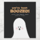 "Du bist verflucht!" Halloween-Weinlabel mit einem weißen Cartoon-Geist mit schwarzem Hintergrund und weißem und orangefarbenem Text. Minimalistisch, modern und lustig. Personalisieren Sie mit kurzem Gruß, Jahr und Name. Ideal für Halloween-Party oder Halloween-Geschenk für Erwachsene.