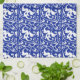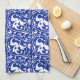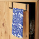 Ikat Blumendamast - Kobalt-Blau und Weiß Geschirrtuch
