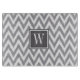 Graue Zickzack Glasschneidplatte mit weißem Monogramm.