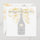 Bouteille de champagne argentée et grise décorée de bulles, de raisins, de vignes et d'inséparables. Une rafale de spray en or complète cette carte amusante mais élégante.L'autre côté montre un style dentelle champagne / verre de vin. Très unique et idéal pour les fêtes de Fiançailles, de Fête des mariées, de Bachelorette ou de la nuit des filles. Customisez cette invitation avec votre propre texte. Illustration d'origine par pj_design.