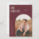 Carte de faire-part moderne de graduation avec cadre en arc rouge pour votre photo. Le texte dit "IL L'A FAIT."