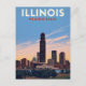 Showcase the heart of the Midwest with this stunning, vintage-style travel postcard for Illinois! This design features a dramatic, stylized Chicago skyline at sunset or twilight, with towering skyscrapers casting their silhouettes against a vibrant sky of blue, orange, and pink. It perfectly represents the Prairie State's dynamic urban center. With the bold, retro text "ILLINOIS PRAIRIE STATE," this art piece is ideal for Chicago natives, architecture enthusiasts, urban travelers, and anyone who loves classic American travel posters. Send a piece of the Windy City or frame it as a modern piece of wall art!