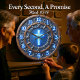 Celebrate your faith with the high-energy and modern aesthetic of this radiant religious wall clock. The central face features a glowing light-blue cross set against a deep navy backdrop with a vibrant sunburst effect. This central icon is framed by intricate faux-metal scrollwork and a secondary outer ring of ornate leaf-style accents. While the layered frames beautifully mimic the appearance of dark-stained timber and the numerals appear to be glowing neon, this is a lightweight and durable graphic timepiece rather than actual wood or electric lighting. The brilliant blue numeric markers provide exceptional contrast against the dark wood-grain background, ensuring the time is easily readable. This polished timepiece serves as a sophisticated focal point for a study, living room, or sanctuary, making it a perfect self-gift for those who appreciate bold, professional spiritual art.