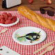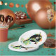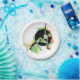 Eine Frau, die abstrakte Illustration ausstreckt. Dieses Design wirkt auf diese Paper-Teller sehr effektiv