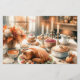 Das Abendessen mit Erntedank in Aquarellfarbe mit einem goldbraunen, gerösteten Truthahn auf einem eleganten Tisch. Weiche Kerzenlicht flackert und strahlt ein warmes Licht über eine Reihe von Desserts. Eine gemütliche Küche mit rustikalem Dekor Set eine einladende Atmosphäre, die den festlichen Geist der Ansammlung verstärkt.