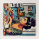Eine niedliche Abbildung einer Frau mit schwarzem Haar in einem chaotischen Knochen, die an ihrem Küchentisch sitzt und ein Puzzle mit Puzzle macht.