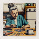 Eine niedliche Abbildung einer Frau mit grauem Haar in einem undurchsichtigen Knochen, die an ihrem Küchentisch sitzt und dabei ein Puzzle mit Puzzle macht.