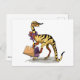 Illustration eines Iguanodon mit Einkaufstaschen. Postkarte
