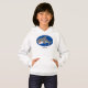 Un grand requin blanc heureux et affamé nage dans l'océan. Dessiné dans le style d'illustration de dessin animé mignon sur un arrière - plan bleu pour une journée amusante!