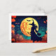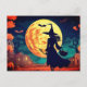 Enchantez vos amis et votre famille avec notre charmante carte postale de Young Witch Halloween! Cette magnifique illustration présente une sorcière jeune, habillée d'un casquette pointu classique et de robes fluides, jetant des sorts sous un ciel étoilé.