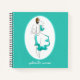 Angepasste Name Fashion Illustration Journal/Notebook. Stilvolles Haute Couture Sketch-Illustrationsheft, hervorgehoben durch einen aquamarinen ovalen Rahmen. Dieses trendige kleine Notebook würde ein perfektes Modedesign-Sketch/Mode-Designjournal bilden. Ihr Name und Ihre Auswahl an Schriftart können Sie einfach mit dem Designwerkzeug von Zazzle einfügen.