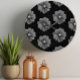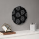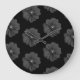 "Illustrierte Blume in Schwarz-Grau-Muster" Große Wanduhr