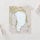 Illustrierte Grönlandkarte in einem Vintagen, detaillierten Stil, mit einem roten Flugzeug dekoriert.