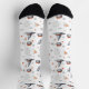 Adorable Halloween Socken mit einem Muster von Kessel, Fledermäusen, Gespenstern und Tränen, perfekt, um den Halloween-Geist zu starten. Illustriert und entworfen von Patricia Alvarez.