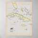 Illustrierte Karte von Kuba (mit den umliegenden Inseln) in einem Vintagen, detaillierten Stil, mit einem roten Flugzeug dekoriert.