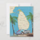 Illustrierte Landkarte von Sri Lanka (mit den umliegenden Inseln) in einem Vintagen, detaillierten Stil, mit einem alten Automobil dekoriert.