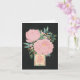 Auf einer illustrierten Muttertagskarte finden Sie handgemalte Abbildungen von Peony-Blume in einer Teekanne mit Handschrift.