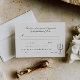 Feiern Sie Ihren besonderen Tag mit unserer skurrilen Hochzeitskarte, wo zeitlose Schönheit und minimalistischer Vintager Charme aufeinander treffen. Diese exquisite Karte wurde sorgfältig entworfen, um das Wesen Ihrer Liebe mit raffinierten Details und künstlerischem Flair zu erfassen. Die Karte wird mit einer feinen, handgezeichnet Abbildung eines Kerzenhalters mit drei Kerzen geschmückt. Der weißgestrichene Hintergrund bietet eine ruhige und klassische Leinwand, die das minimalistische Design unterstreicht. Der elegante kohlegraue Schriftart, inspiriert durch Vintage Kalligraphie, fügt eine Touch von Eleganz und Wärme hinzu. Diese sorgfältig ausgewählte Typografie ergänzt die künstlerischen Elemente und sorgt dafür, dass Ihre Hochzeitsdetails stilvoll und übersichtlich präsentiert werden. Diese RSVP-Karte wurde speziell für den Komfort konzipiert und bietet Ihren Gästen Platz, um ihre Speisekarte in einem nahtlosen und eleganten Format zu ergänzen.