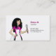 Moderne Illustration eines Mädchens, das eine Schürze trägt und eine Küche hält, wischen und lächeln. Diese Visitenkarte ist groß, Ihre Sozialmediumadressen und -telefon zu schreiben!