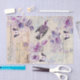 Illustrierter Vogel mit Blume in Lila Collage Seidenpapier