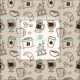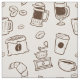 Brown-Kaffeebohnen, Kaffeetasche, Kaffeemaschine, ganz über illustriertes Elementmuster des Kaffees. Vervollkommnen Sie für Kaffeegeschäfte, die wollen, um ihre Speicher mit Kaffeemuster zu verzieren.