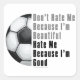 Fußball Art Don’t Hate Me, weil ich gute T - Shirt, Geschenke und Accessoires bin, die vom ITD Sports Centre kreiert wurden, zeigen unsere originellen Kunstwerke eines halben schwarz-weißen Fußballballs auf der links Seite, mit schwarz-weiß auf der rechten Seite. Hasse mich nicht, weil ich schön bin, hasse mich, weil ich gut bin. Unsere sportlichen und spielerischen Produkte sind großartige Geschenke für Fußball-, Fußball-, Fußball-, Fußball-, Fußball-, Fußball-, Fußball-, Fußball- und Sportliebhaber jeden Alters. Es ist alles Spaß und Spiele bei Imagine That! Design Sport Center!