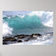Aufgefangen im Augenblick einer schönen Welle, die in Richtung eines Ufers in Hawaii kurbelt.