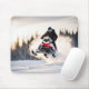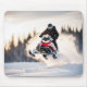 Ein Mann, der im Schnee auf Schneemobil fährt