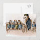 Vintage Abbildung eines Tisches junger Eulen mit einer "Lehrereule" am Tischkopf. Auf einem Stuhl dahinter ist eine Eule mit einem Dunzerhut