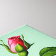 L'image représente un trio de roses roses, chacune à différents stades de floraison, dressé sur un fond vert doux. Le rose central est en pleine floraison, ses pétales se déplaçant gracieusement pour révéler un centre délicat en forme de coeur. Deux petits bourgeons encadrent le rose central, ajoutant un sens du dynamisme à la composition. Les roses sont rendus avec des détails exquis, capturant les subtiles variations de couleur et de texture des pétales. Les feuilles et les tiges verdoyants offrent un contraste éclatant avec le rose doux des roses, tandis que l'arrière - plan vert muet permet aux fleurs de prendre le centre de la scène.