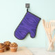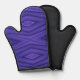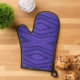 "Image montrant un gant de four violet avec un motif géométrique sur le devant et une surface noire texturée sur le dos. Le design est audacieux et moderne."