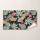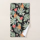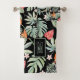Arrière - plan noir pour un imaginaire fleuri et feuillu de fleurs colorées d'Oiseau du Paradis, fleurs d'Anthurium et de plumeria posées sur le Monstera et feuilles de palmiers. Un très joli look côtier/hawaïen qui est spectaculaire. Vert loden, rouge-orange et oranges avec un accent rose pêche. Toutes sont aquarelles peintes éléments floraux et feuillages. Monogramme inférieur droit dans un cadre rectangle. Personnalisez ou supprimez, comme vous le souhaitez.