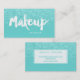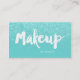 Eine moderne, stilvolle Make-upkünstler-Geschäftskarte mit moderner Handbeschriftungsart-Bürstentypographie im Weiß auf aquamarinen Imitat-Glitter und -türkis aquamariner trendy und elegantem Hintergrund.