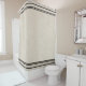 Schönes Imitat-ist Leinengewebehintergrund auf diesem Streifen-Duschvorhang.